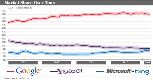 That right Google, Yahoo and Bing cover more than 95% of the US search engine market.